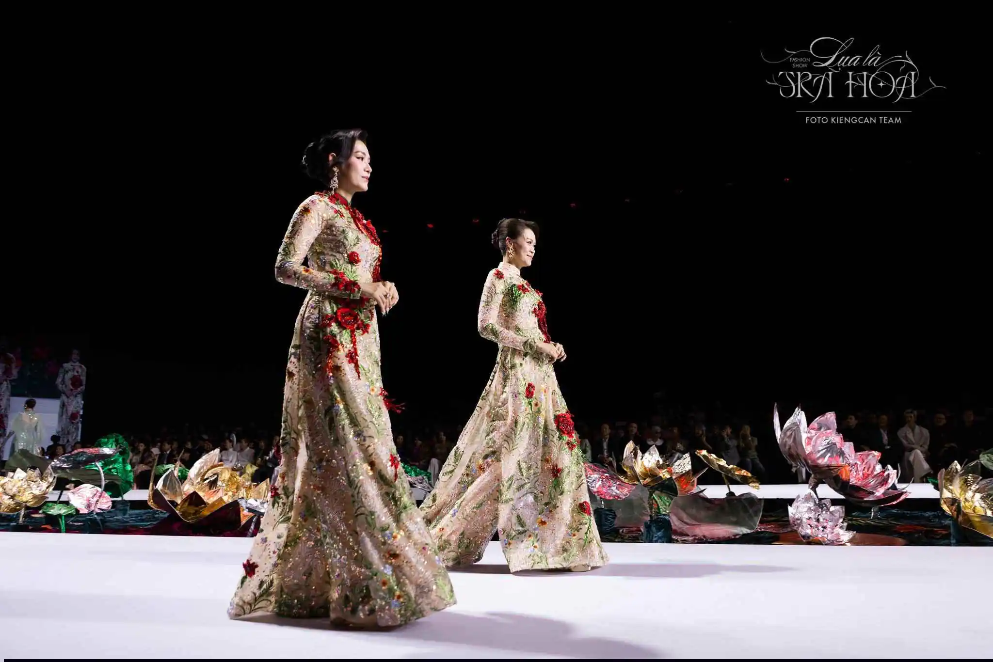 Show diễn “Lụa Là Trà Hoa” của NTK Linh San khai thác vẻ đẹp truyền thống Việt Nam qua chất liệu lụa và hoa, tôn vinh sự mềm mại, thanh lịch nhưng cũng đầy cá tính. Trong bối cảnh đó, sự góp mặt của Ngọc Nga được nhiều khán giả đánh giá là phù hợp khi cô mang đến hình ảnh một người phụ nữ hiện đại nhưng vẫn giữ trọn nét duyên dáng Á Đông.