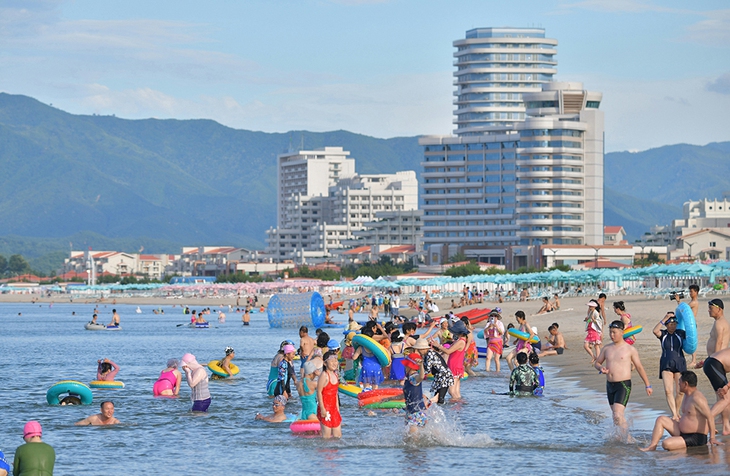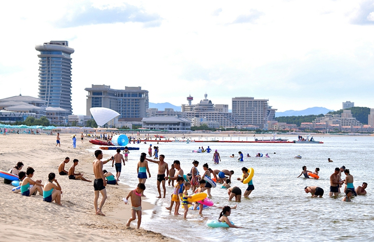 Người dân Triều Tiên tắm biển và vui chơi tại khu nghỉ dưỡng Wonsan Kalma mới khánh thành – Ảnh: KCNA