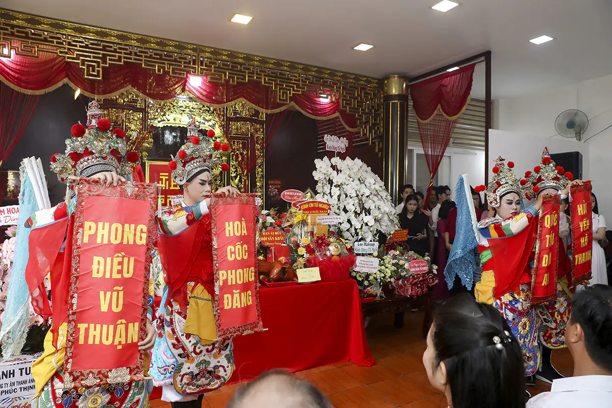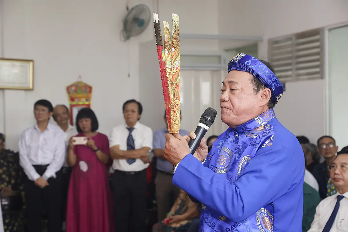 Ngay từ sáng sớm, không gian Nhà thờ Tổ đã nhộn nhịp với sự hiện diện của nhiều thế hệ nghệ sĩ. Trong trang phục truyền thống, NSND Trịnh Kim Chi – Phó chủ tịch Hội Sân khấu TP.HCM, Trưởng ban Ái hữu nghệ sĩ trang nghiêm đọc tuyên bố khai mạc và cùng các ban, hội, nghệ sĩ thực hiện nghi lễ dâng hương Tổ nghiệp.