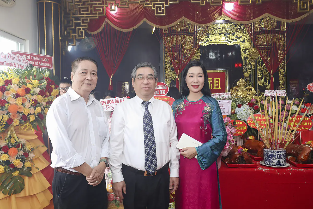 Buổi lễ diễn ra trong bầu không khí trang trọng với sự tham dự của các đại biểu Sở, ban ngành cùng đông đảo văn nghệ sĩ. Đặc biệt, NSND Thanh Thúy – Phó giám đốc Sở Văn hóa và Thể thao TP.HCM có mặt tại buổi lễ, dâng hương tưởng niệm và bày tỏ sự trân trọng đối với truyền thống nghề nghiệp.