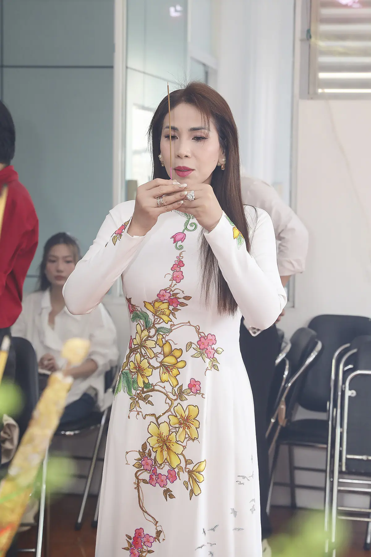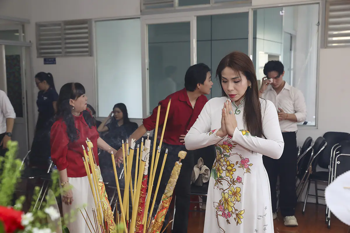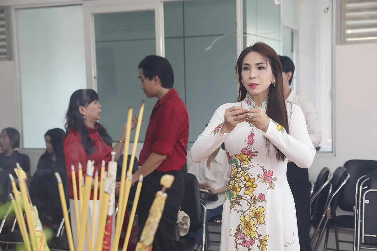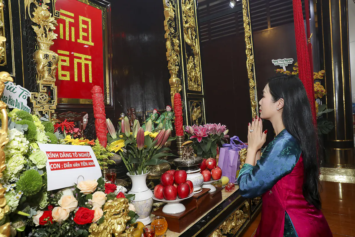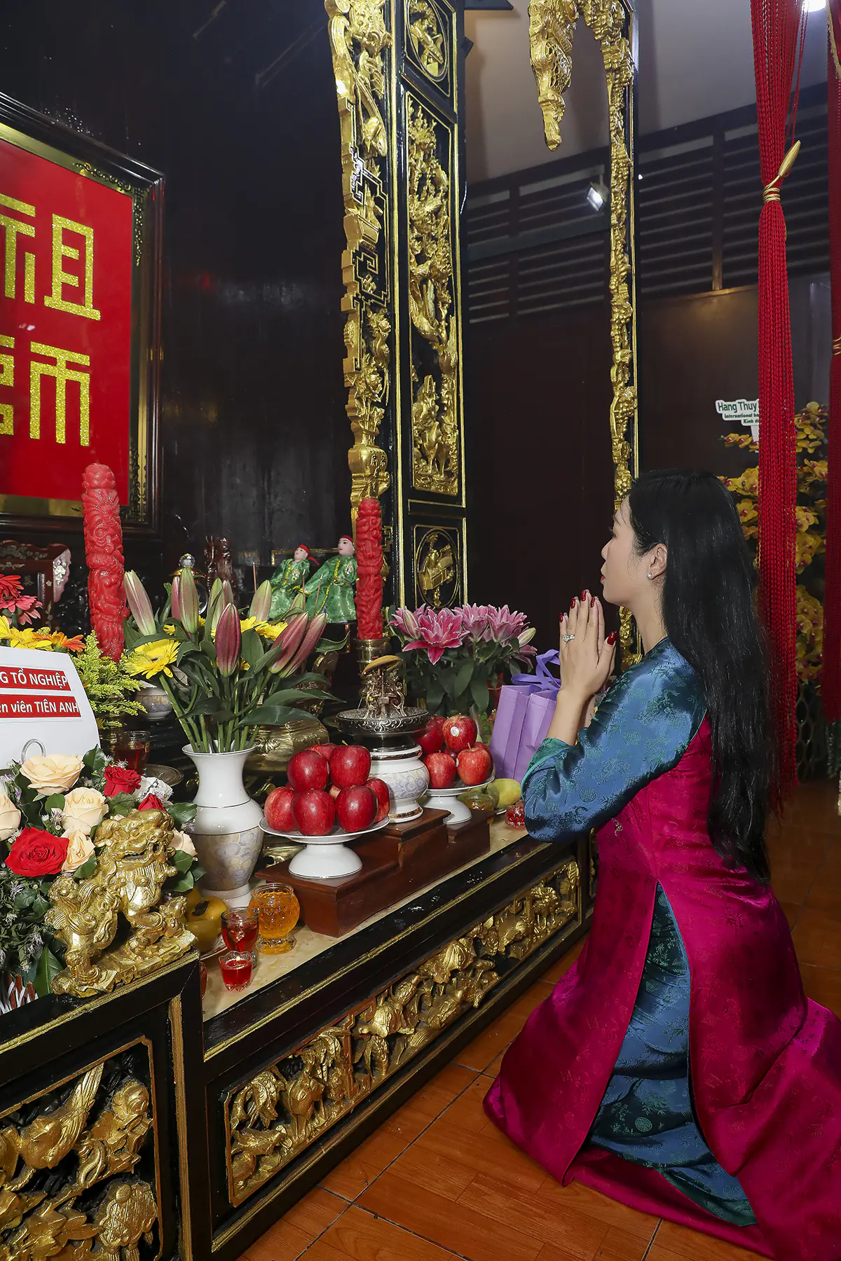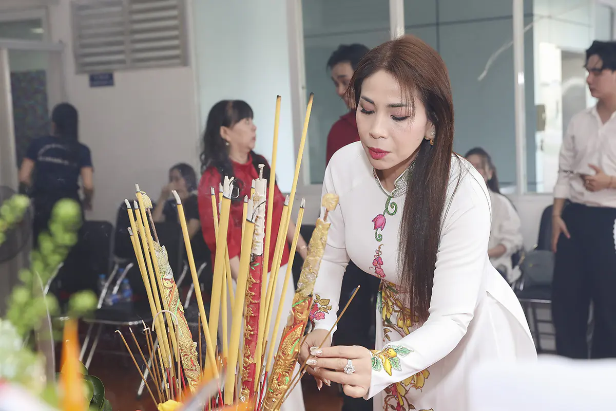 Nghệ sĩ Lý Hương thành tâm phụng cúng