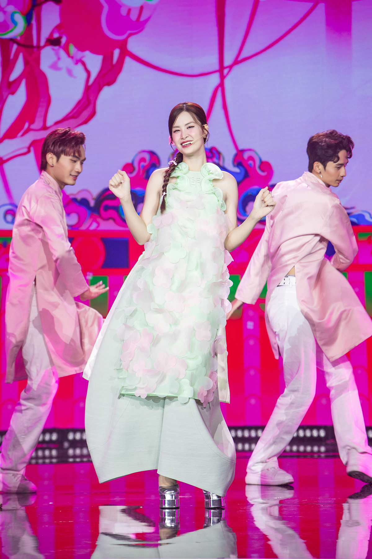 Đông Nhi là gương mặt quen thuộc của Gala Nhạc Việt suốt 12 năm qua với số lần tham gia chương trình không thua kém gì Hồ Ngọc Hà, Cẩm Ly… Năm nay, Đông Nhi góp mặt với ca khúc ‘Xuân quê hương, Tết rực rỡ’ của nhạc sĩ Nguyễn Hồng Thuận. Nữ ca sĩ chia sẻ, cô mới sinh bé gái thứ hai không lâu nên Tết năm nay sẽ vô cùng ý nghĩa với cả gia đình cô. Theo cô Tết 2025 này thật trọn vẹn và rực rỡ bên hai cô công chúa nhỏ.