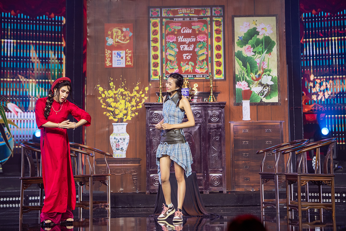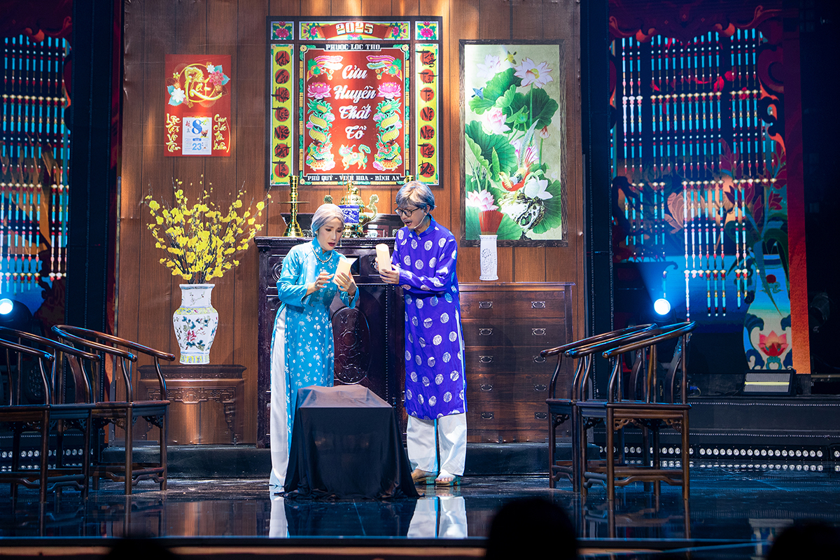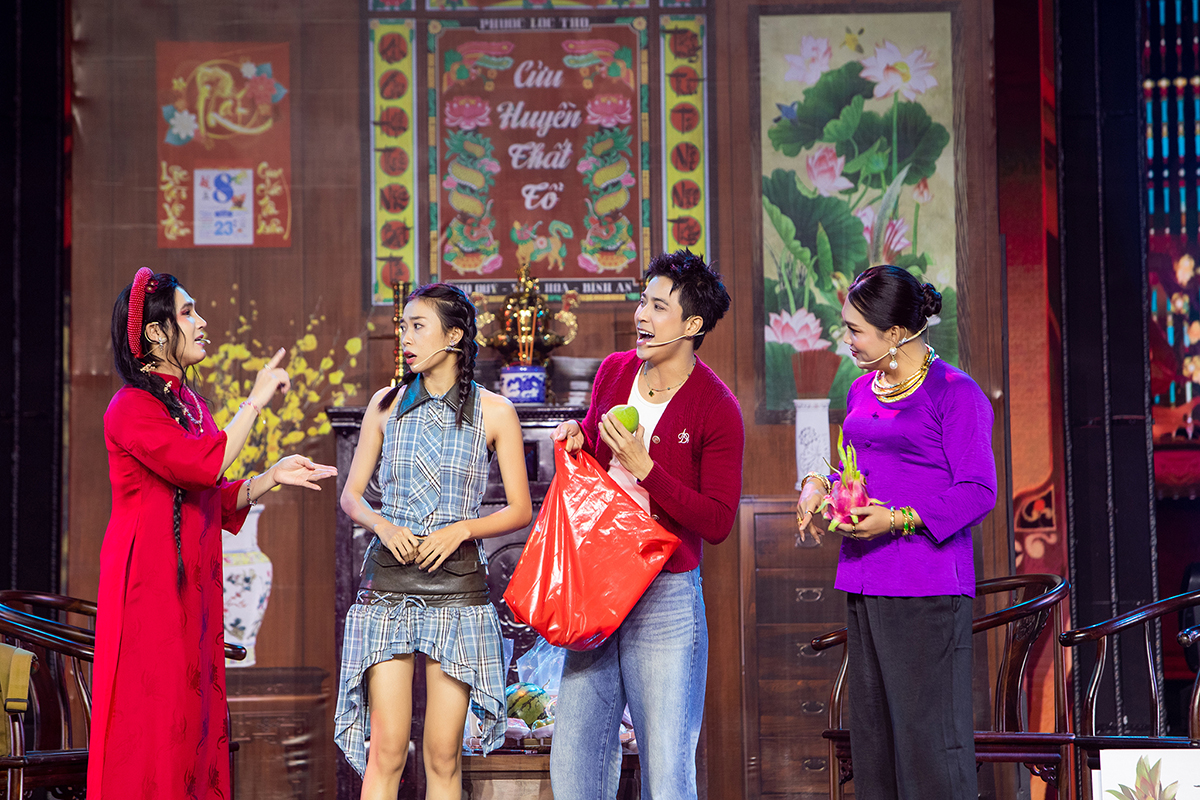 Huỳnh Lập đóng vai mẹ hai con trong tiểu phẩm ‘Nhà gia tiên’