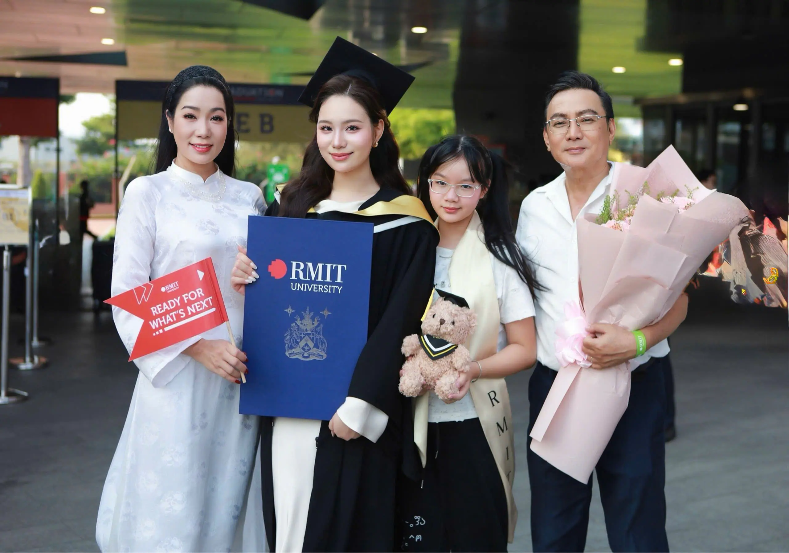 Theo chia sẻ từ gia đình, trong suốt thời gian theo học, ái nữ của nữ nghệ sĩ luôn thể hiện tinh thần nghiêm túc và ý chí cầu tiến. Không chỉ duy trì kết quả học tập tốt, cô còn tích cực tham gia các chương trình thực tập, hoạt động ngoại khóa nhằm tích lũy kinh nghiệm thực tiễn. Những trải nghiệm này giúp cô sớm định hình con đường nghề nghiệp, đồng thời rèn luyện sự tự tin, khả năng làm việc độc lập và tư duy linh hoạt trong môi trường hiện đại.